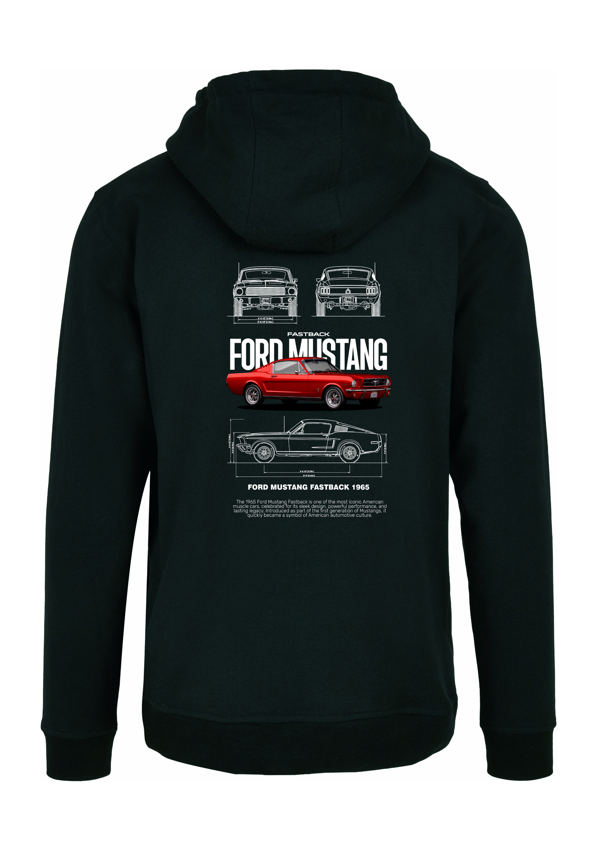 - Hoodie noir avec marquage descriptif Ford Mustang Fastback 1965